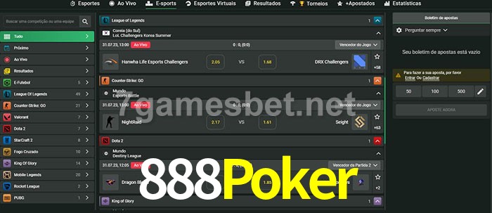 A aposta 888Poker oferece aos jogadores a experiência mais conveniente de apostas em eSports!
